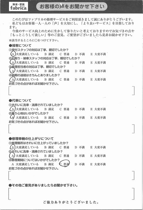 この度は数ある修理工場の中からファブリカをお選び頂き、誠にありがとうございました。今後も何かお困りのことがございましたら、ぜひご用命くださいませ。