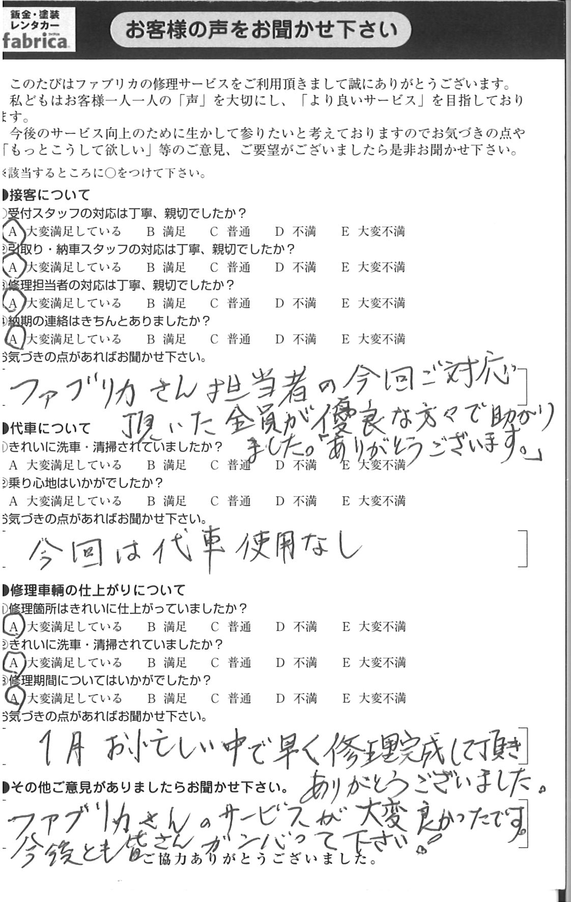1月お忙しい中で早く修理完成して頂きありがとうございました。